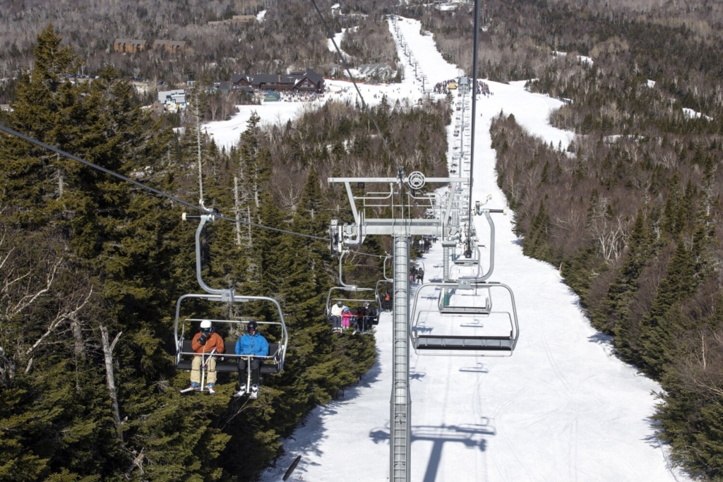 Skiers ride up the new lift at Saddleback Ski Resort outside Rangeley in this photo from March. Brianna Soukup/Staff Photographer