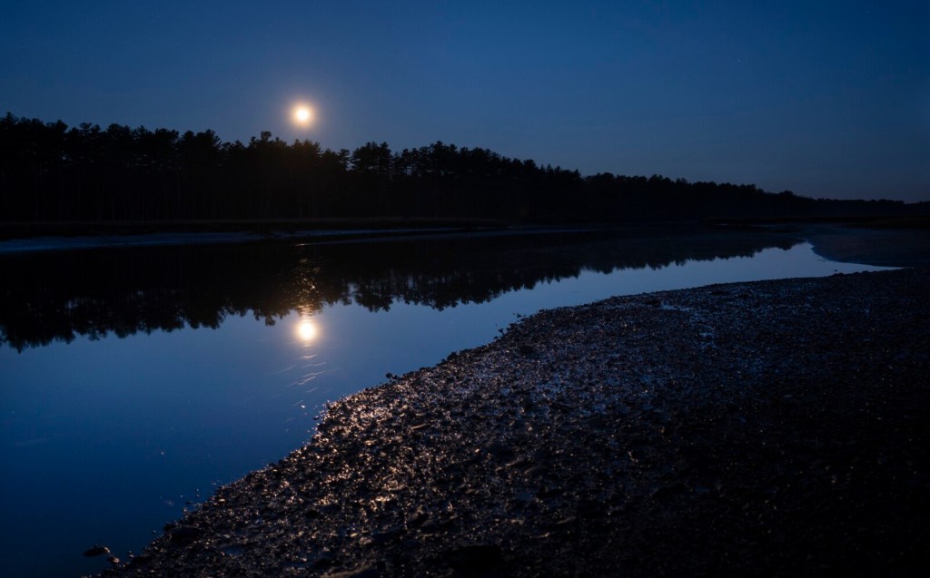 The moon shows a partial eclipse early Friday morning, seen from Kennenbunk. The duration of the partial eclipse was three hours, 28 minutes and 24 seconds, the longest in 580 years, according to Space.com. Because of overcast skies in southern Maine, however, the partial eclipse was not visible until near its end, around 5 a.m. The partial eclipse happened during a full moon, known as the Beaver Moon or Frost Moon. Gregory Rec/Staff Photographer