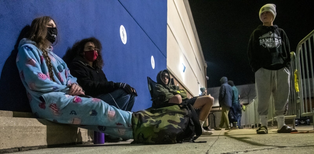 In front of the Smarts and Madore were Brittney Porter and Cameron Estrella, first in line at Kohl’s. They drove down from Rumford to get in line at 4:15 a.m.