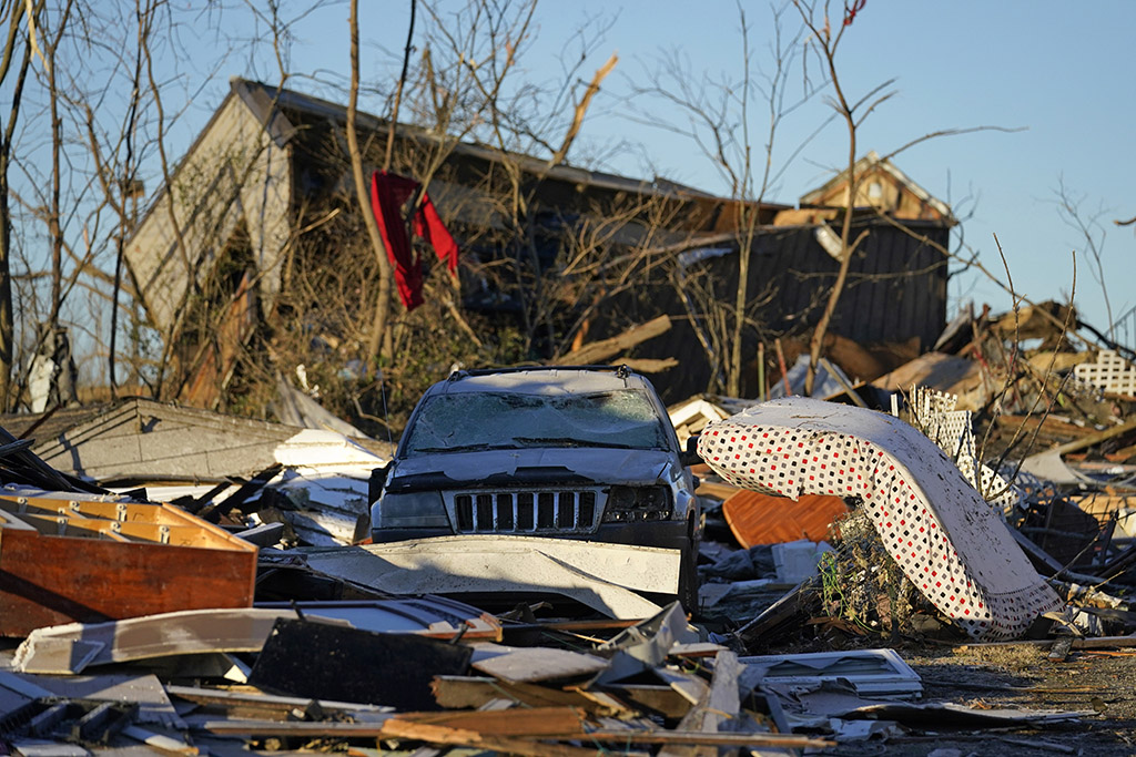 Damaged cars and destroyed homes are left Monday in the aftermath of tornadoes that tore through Mayfield, Ky. Associated Press/Gerald Herbert