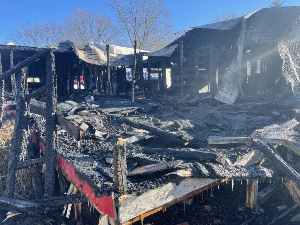 A barn on River Road in Clinton was destroyed by fire Thursday. It was behind a home but the flames were not able to spread because the barn was far enough away. No one was hurt in the blaze. Evan Houk/Morning Sentinel