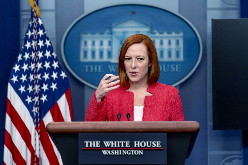 White House press secretary Jen Psaki speaks at a briefing Friday in Washington. Andrew Harnik/Associated Press