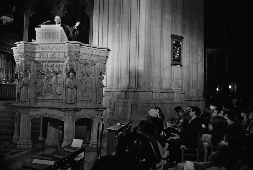 The Rev. Martin Luther King Jr., preaches from the pulpit at the National Cathedral in Washington on March 31, 1968. It would be his last Sunday sermon before he was assassinated on April 4, 1968, in Memphis. John Rous/Associated Press