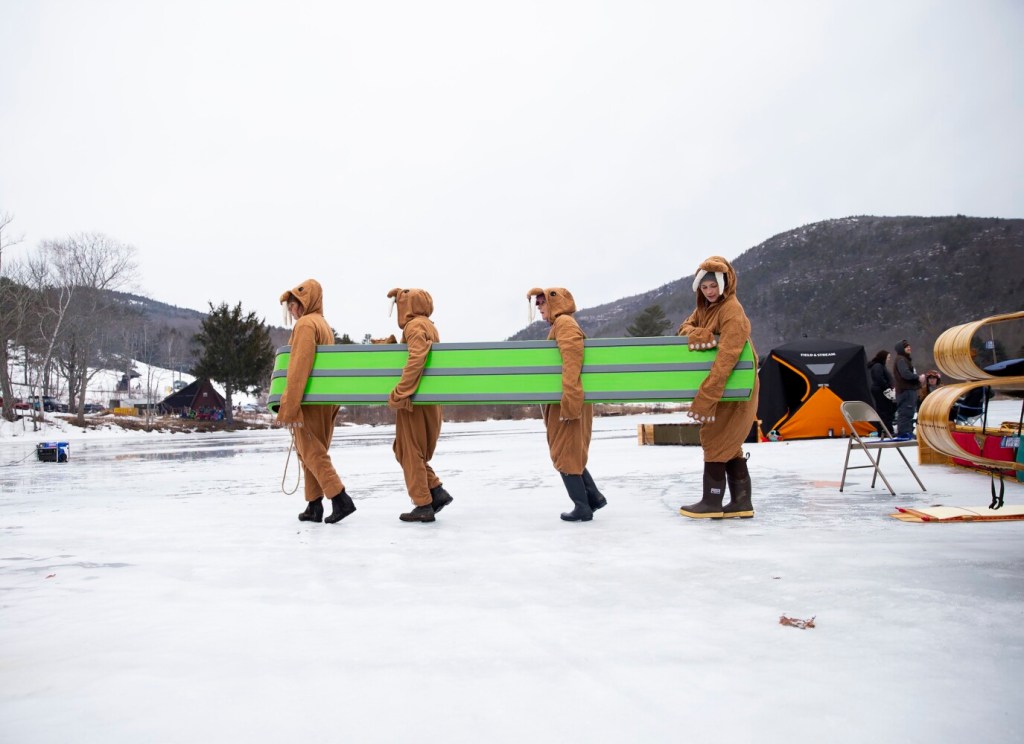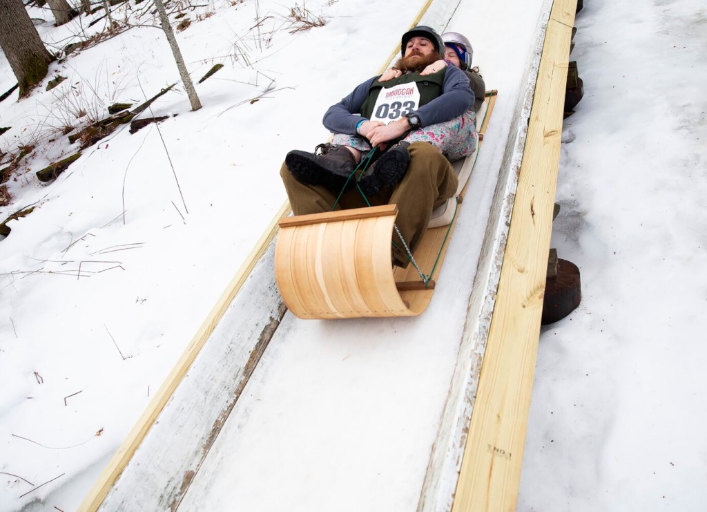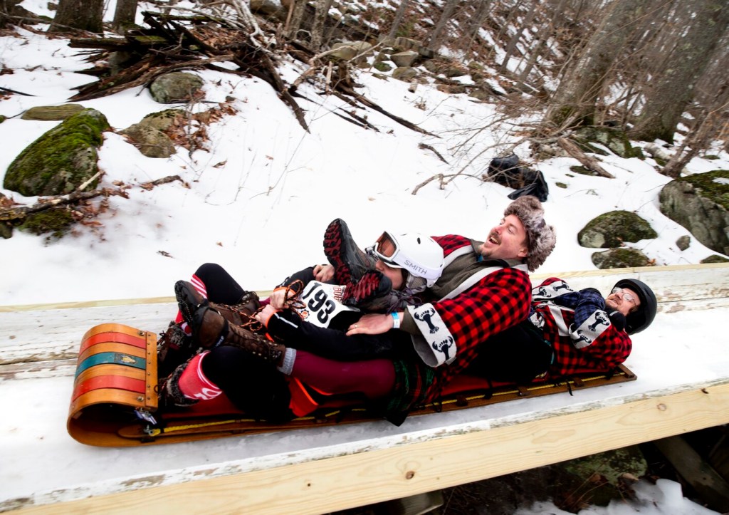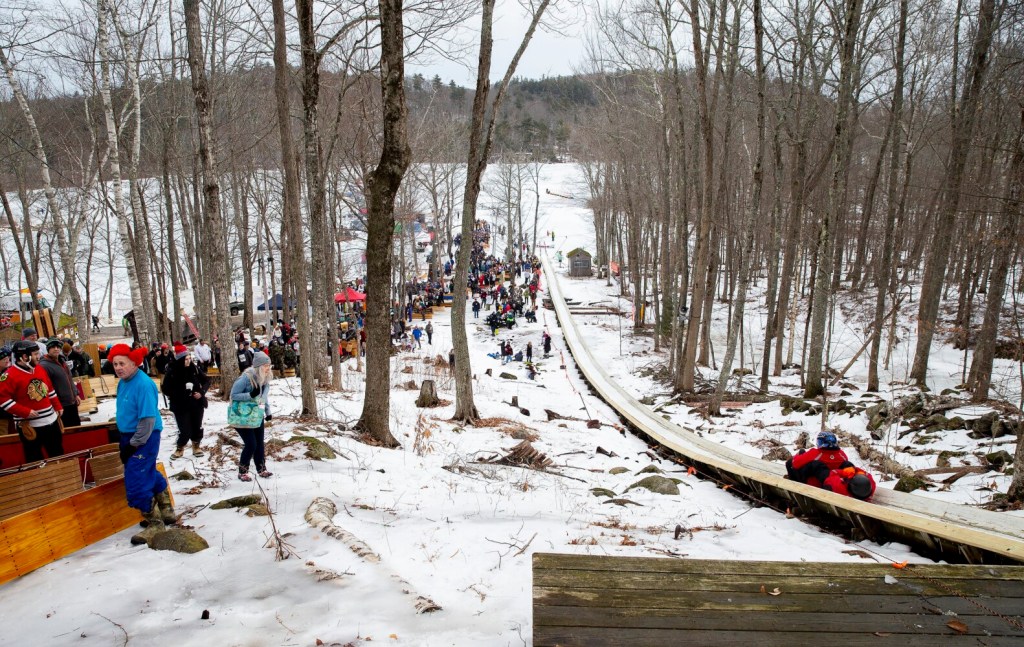 The competition raises money for the Camden Snow Bowl; a nonprofit, municipally-owned ski area on the 1,300-foot Ragged Mountain, which overlooks the Atlantic Ocean. The toboggan chute has been rebuilt twice, most recently in 1990.