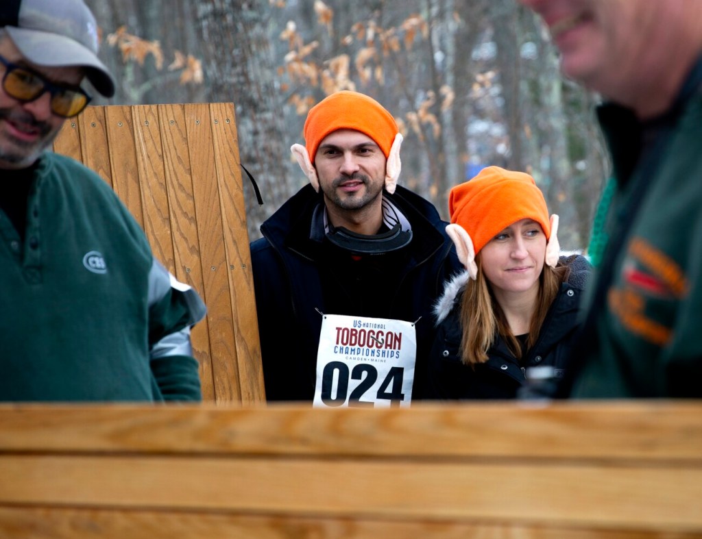 The U.S. Toboggan National Championships kicked off Saturday with teams like Slush Puppies, Chowda Heads, Fast and Flurriest and Squid Pro Quo awaiting their turn on the toboggan chute at the Camden Snow Bowl.