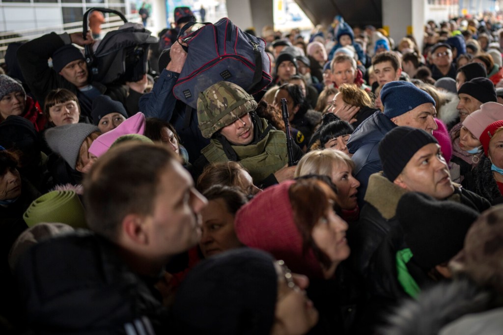 Kyiv’s central train station remained crowded with people desperate to join the more than 1.4 million who have fled Ukraine. “People just want to live,” one woman, Ksenia, said.