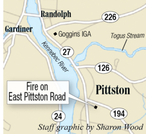 The fire was reported at about 1:40 p.m. and smoke and flames were visible from Augusta. The blaze at Tuthill has been extinguished, said Pittston Fire Chief Joshua Johnson, but flames were still spreading at the property on East Pittston Road during the afternoon.