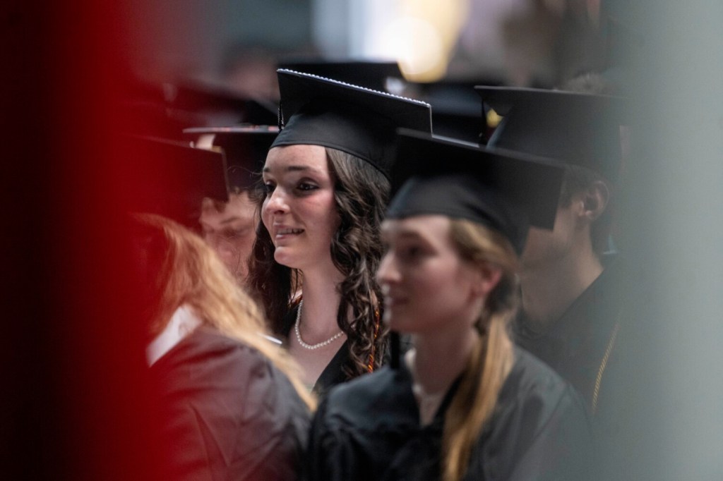O’Clair is one of 254 Thomas students who received degrees Saturday at Thomas’ 128th commencement ceremony held in a steamy Harold Alfond Athletic Center on the West River Road campus where temperatures outside exceeded 90 degrees. About 2,500 students, faculty, families and friends packed the center for the event, hosted by Thomas President Laurie Lachance.