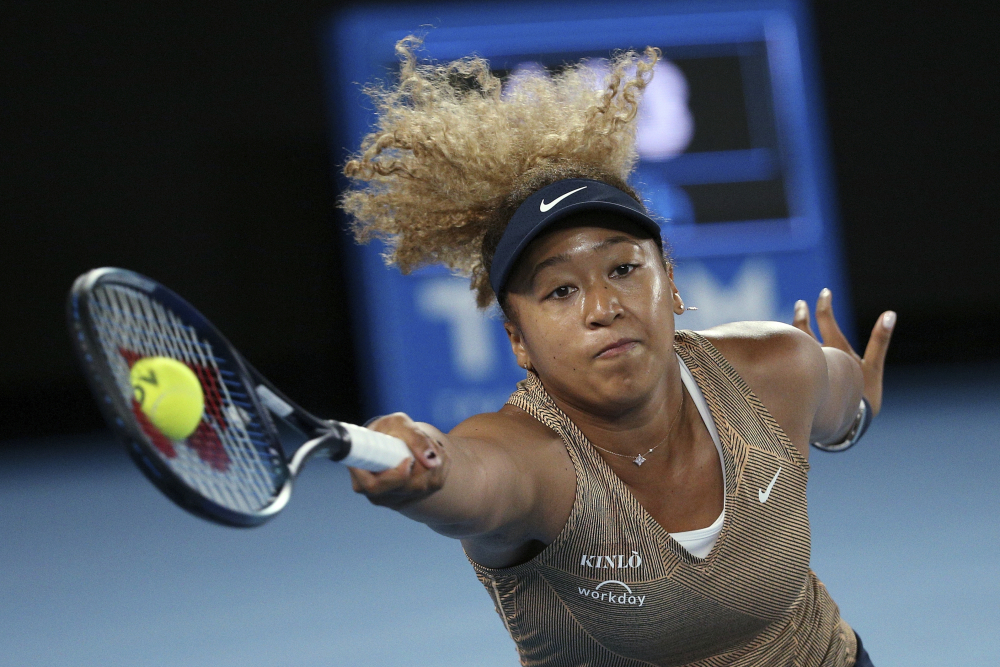 Naomi Osaka of plays at the Summer Set tennis tournament ahead of the Australian Open in January 2022. Associated Press/Hamish Blair