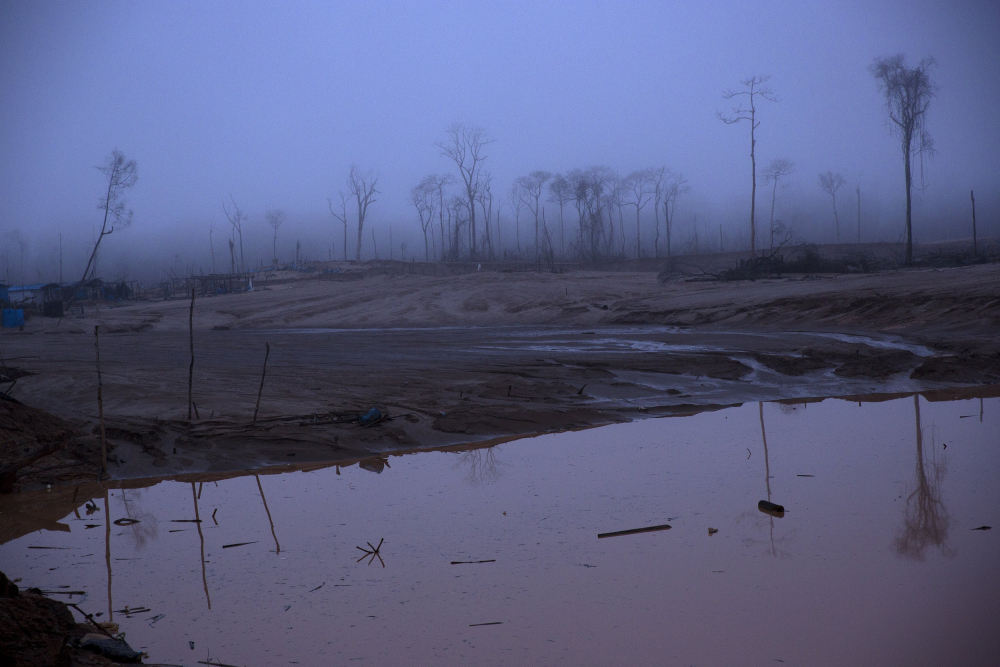 Deforestation of what was once pristine rainforest, caused by gold mining, during a government raid on illegal wildcat mining operations in La Pampa, in Peru’s Madre de Dios region, in 2016. Rodrigo Abd/Associated Press, FIle