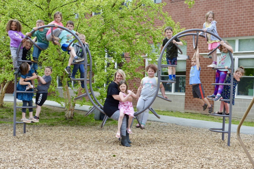 Stacey Augustine, a kindergarten teacher at W.G. Mallett School in Farmington, has been selected as the Maine Department of Education’s 2022 Franklin County Teacher of the Year. Augustine, pictured with her students, said she has loved teaching kindergarten because of the many hats she gets to wear and connections she forms. Photo courtesy of Chlorissa Plaisted