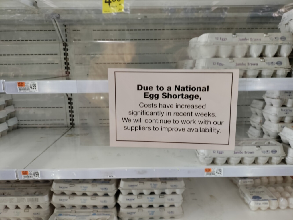 To be clear, there were plenty of eggs in the case, with noticeably higher prices and some empty spaces for specific brands or types of eggs. The federal government and the industry acknowledge egg prices are rising sharply and may be in short supply at times through the end of the year.