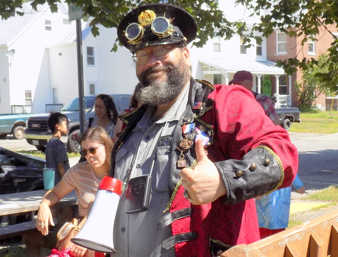 Captain Dartani Darkenwulf, a.k.a. Darin Beaulieu of New Portland is ready to lead the children’s parade during Summer Fest Saturday morning in Farmington. Pam Harnden/Livermore Falls Advertiser