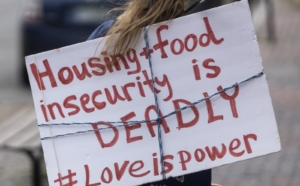 Housing and food insecurity are among the many challenges that the Maine People’s Alliance has addressed, working to enact free school meals, eviction moratoriums and broad rental assistance. Above, advocates mark World Homelessness Day last October in Portland. Brianna Soukup/Staff Photographer