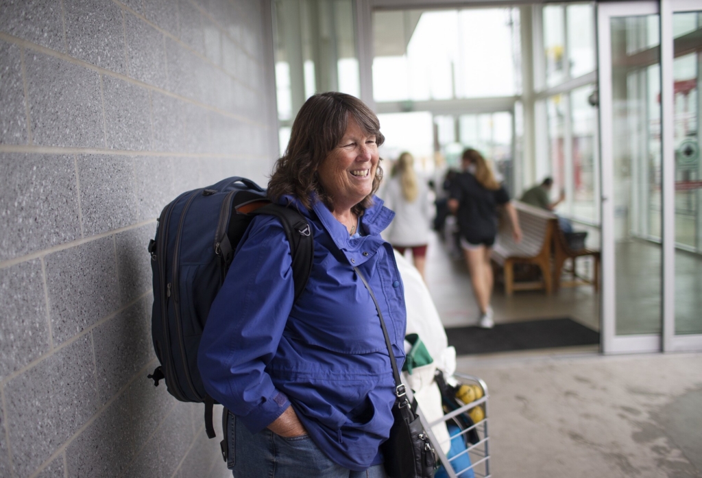 Linda McCann waits for a ferry in Portland while returning to Long Island where she lives for part of the year. She said she is looking forward to autumn on Long Island. Derek Davis/Staff Photographer