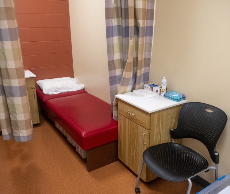 One the cots in the health suite is seen Thursday at Cony Middle and High School in Augusta. The Augusta high school recently received a grant from the Maine Center for Disease Control & Prevention to establish a more robust school-based health center that will bring doctors and physician assistants into the school. Joe Phelan/Kennebec Journal