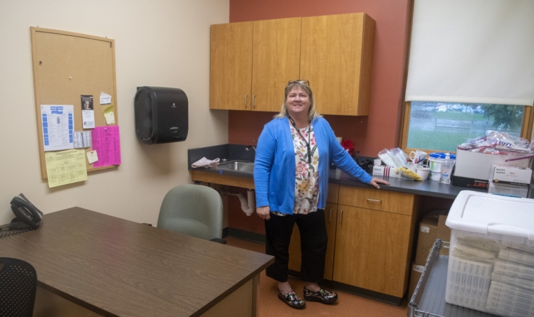 Cony Middle and High School Principal Kim Silsby stands Thursday in an office currently used for storage, but is planned to be eventually used by a doctor when one is added to health suite staff at the school in Augusta. The Augusta high school recently received a grant from the Maine Center for Disease Control & Prevention to establish a more robust school-based health center that will bring doctors and physician assistants into the school. Joe Phelan/Kennebec Journal