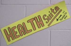 Signs in the food court pointing to a health suite are seen Thursday at Cony Middle and High School in Augusta. The Augusta high school recently received a grant from the Maine Center for Disease Control & Prevention to establish a more robust school-based health center that will bring doctors and physician assistants into the school. Joe Phelan/Kennebec Journal
