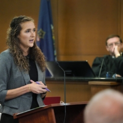 At the start of the murder trial of Jessica Trefethen, her attorney Caitlyn Smith delivers opening statement to jurors in Waldo County Superior Court. Gregory Rec/Staff Photographer