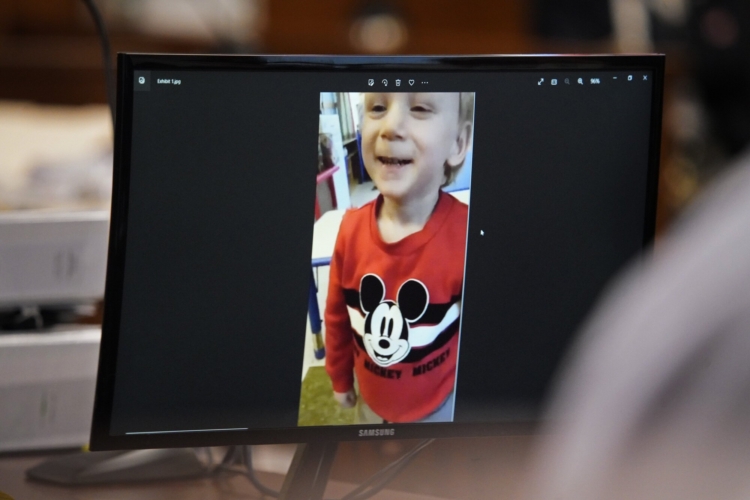 A photo of Maddox Williams is displayed on a computer screen during his mother’s trial in Waldo County Superior Court. Gregory Rec/Staff Photographer