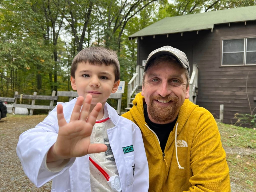 Campion Poulin and his dad Joe Poulin of Oakland ran the archery range. Campion dressed as a skeleton. Joe serves as the Pine Tree Council Training Chair.