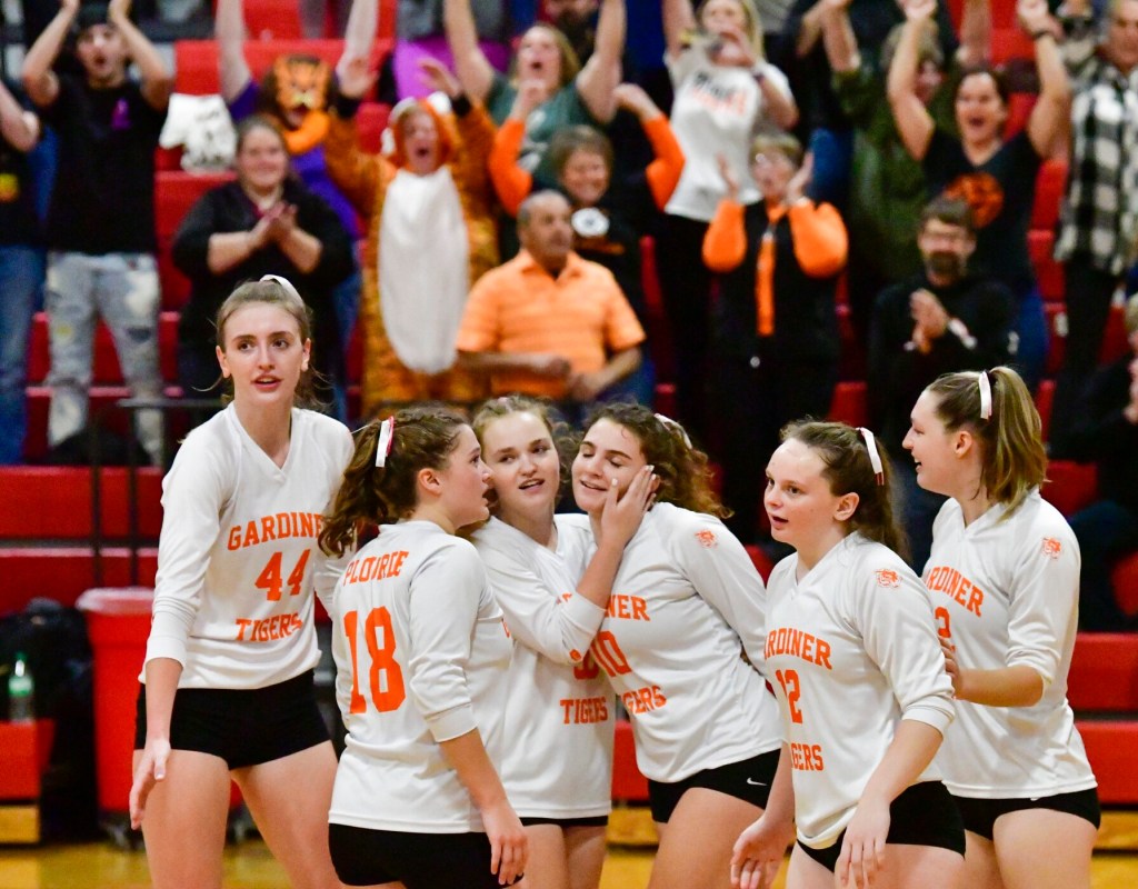 Gardiner rolled through the first two sets, 25-13 and 25-11. But Cony refused to quit, going back-and-forth with the Tigers in the third set. The Rams led 11-5 at one point. The Tigers and Rams would continue to trade points before a spike by Montell capped the set 27-25 to finish off the match.
