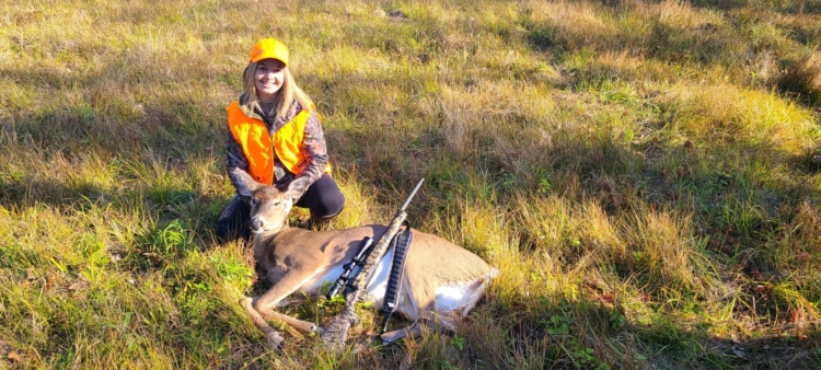 Bessey said she sat in a stand behind that family friend’s house. Suddenly, she noticed the others all pointing downward and saw two deer beneath her perch — a “baby and her mom.” Bessey’s friend advised her to go for whichever one she could get good a shot at, so she took aim at the doe with her .243 rifle. “I was shaking so much,” Bessey said, while she looked through the scope. So she decided to stand, and got the shot.