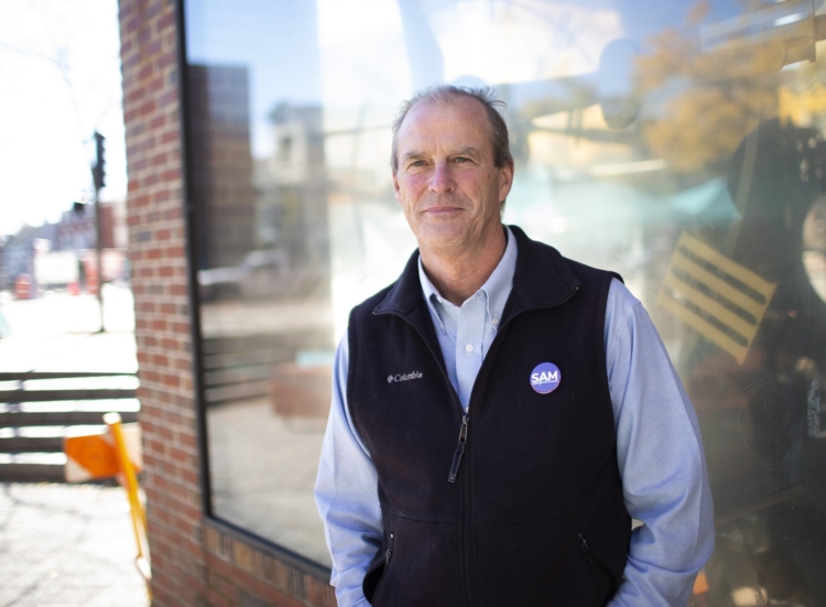 Sam Hunkler is refusing to accept campaign donations while facing two of Maine’s best-known politicians. His pitch to voters is that he will listen to them and do what the Maine people want. Derek Davis/Staff Photographer