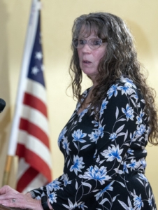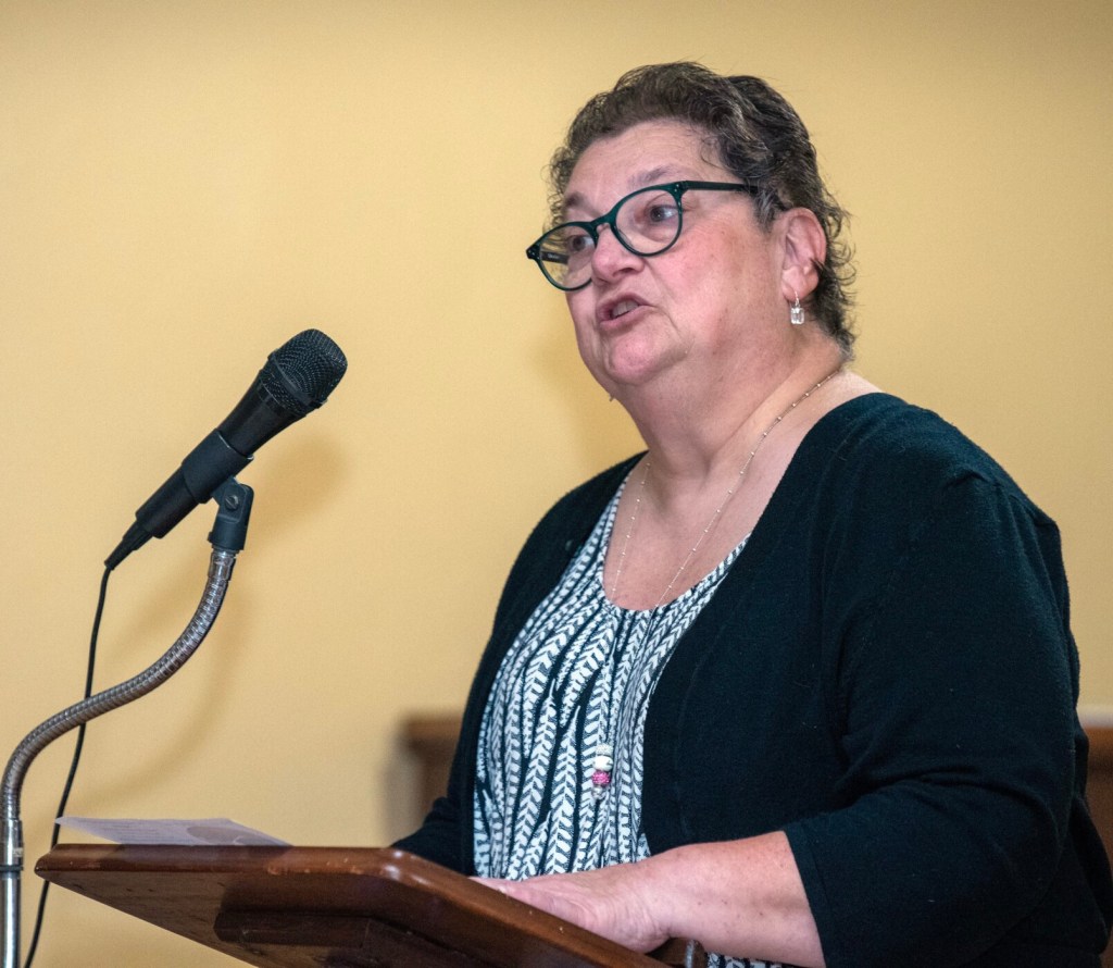Betty St. Hilaire, chairperson of the Augusta Overnight Warming Center Advisory Board, speaks Wednesday during a tour of the Augusta Overnight Emergency Warming Center in the South Parish Congregational Church. Joe Phelan/Kennebec Journal