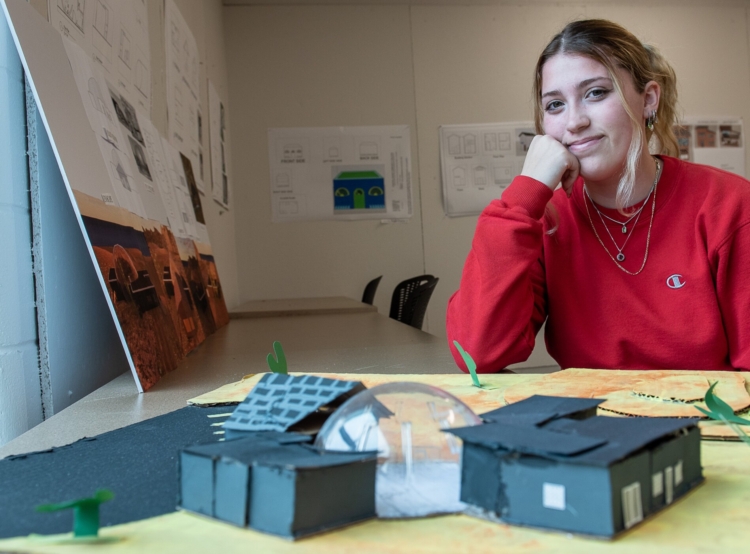 “I’ve always really been fascinated with how houses look different from one another,” Peighton Theriault of Sabattus said. “I’m a really big interior design person — matching patterns and colors and everything, so I just thought it would be a good head start into the engineering world.”