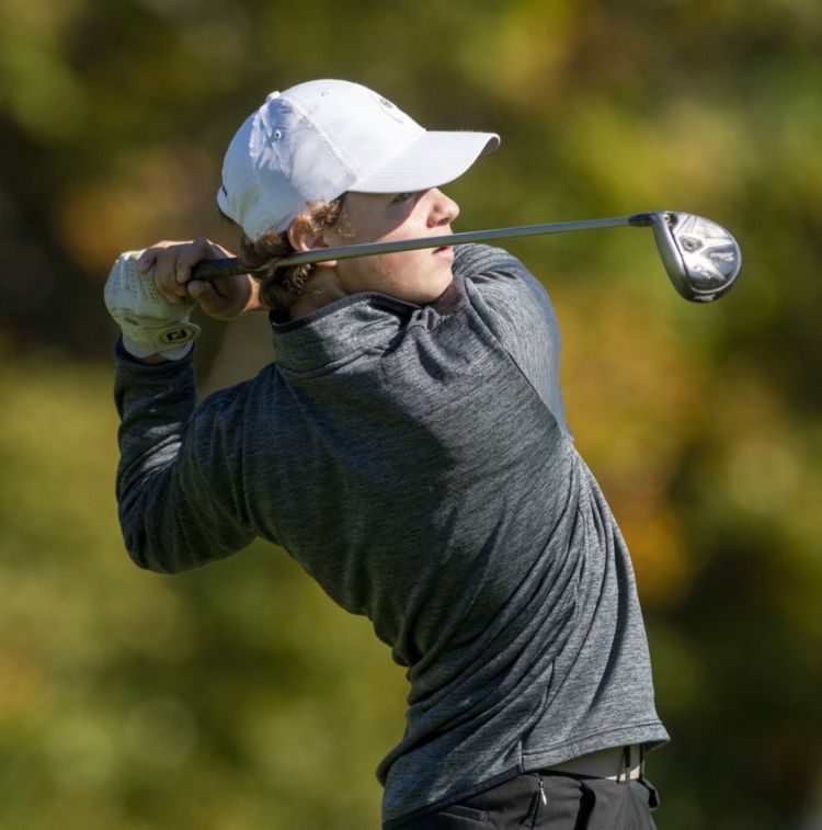 Maranacoook’s Wyatt Folsom finished second in the Class C state championship tournament on Oct. 8 at Natanis Golf Course. Maranacook won the Class C team title. Joe Phelan/Kennebec Journal