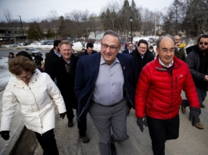 Former Gov. Paul LePage, joined by his wife Ann and former Congressman Bruce Poliquin, walks to the State House to submit signatures to the Secretary of State to qualify and have his name placed on the 2022 ballot. Derek Davis/Staff Photographer