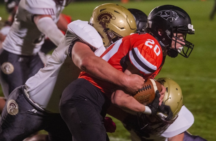 From there, though, it was all River Hawks. Grounding out yardage little by little, Skowhegan scored four unanswered rushing touchdowns, all courtesy of Savage. Falmouth then scored and converted the 2-point try with a minute left, but the River Hawks smothered the ensuing onside kick to become regional champs.