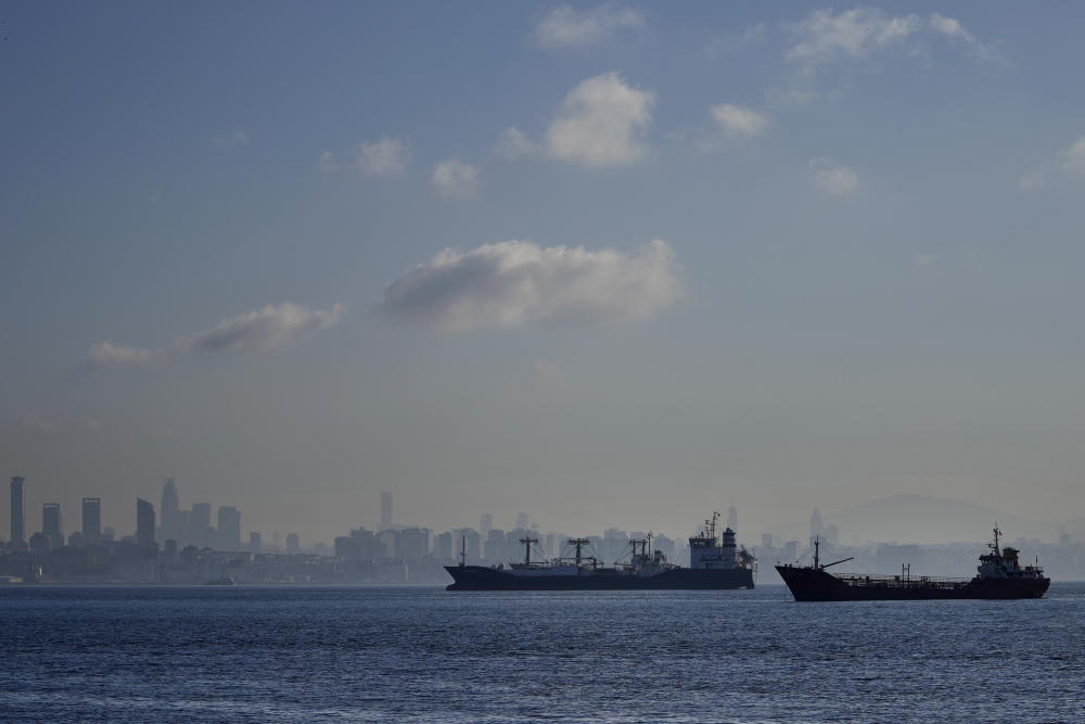 Cargo ships anchored in the Marmara Sea await to cross the Bosphorus Straits in Istanbul, Turkey on Tuesday, Nov. 1. Khalil Hamra/Associated Press file
