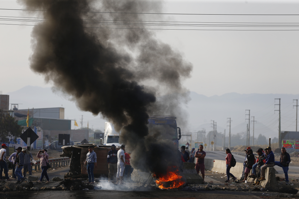 Supporters of ousted Peruvian President Pedro Castillo block the Pan-American North Highway to protest his detention in Viru, Peru on Thursday. Peru’s new government declared a 30-day national emergency on Wednesday amid violent protests following Castillo’s ouster, suspending the rights of “personal security and freedom” across the Andean nation. Hugo Curotto/Associated Press