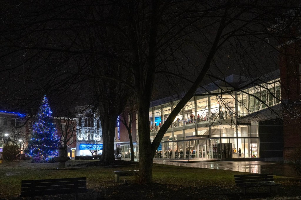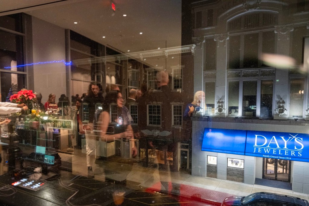 A rolled out red carpet on the floor ran along a row of giant windows overlooking snowy Main Street, offering a new perspective of businesses such as Day’s Jewelers, Lion’s Den Tavern, The Jewel of India and The Record Connection across the street.