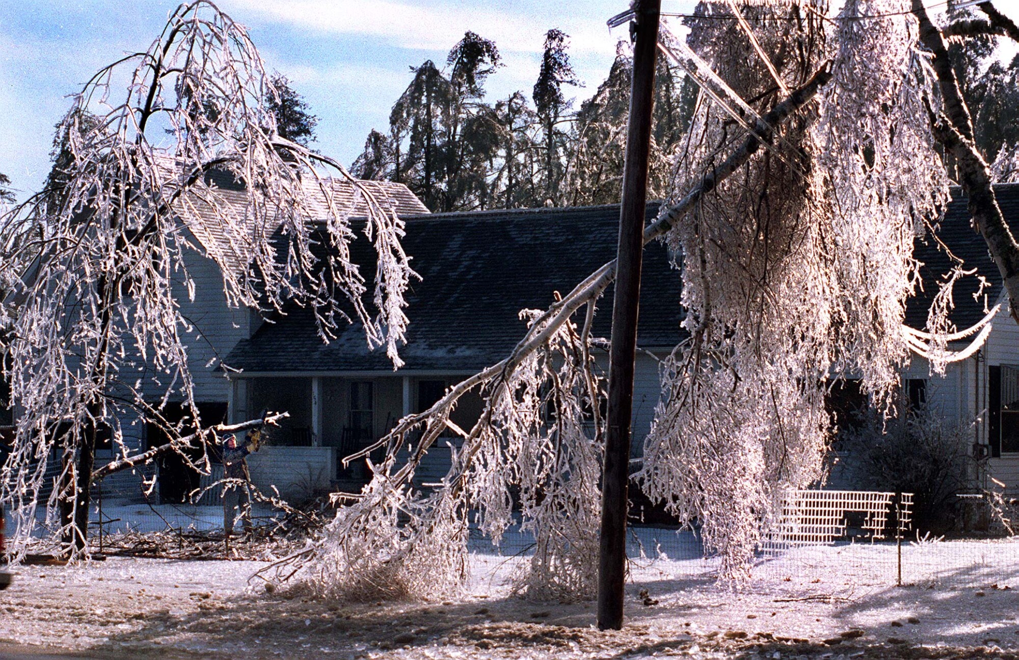 Jewel McHale of Route 115 in Yarmouth cuts up one of the many trees that broke under the weight of the ice at her home. Although beautiful to look at, the ice storm caused a lot of damage to trees, wires and homes in the state. Gordon Chibroski/Press Herald