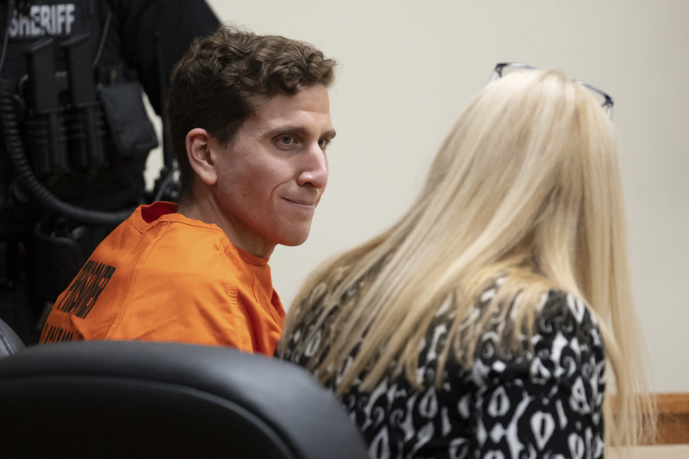 Bryan Kohberger, left, who is accused of killing four University of Idaho students in November 2022, looks toward his attorney, public defender Anne Taylor, right, during a hearing in Latah County District Courton Thursday in Moscow, Idaho. Ted S. Warren/Associated Press, Pool