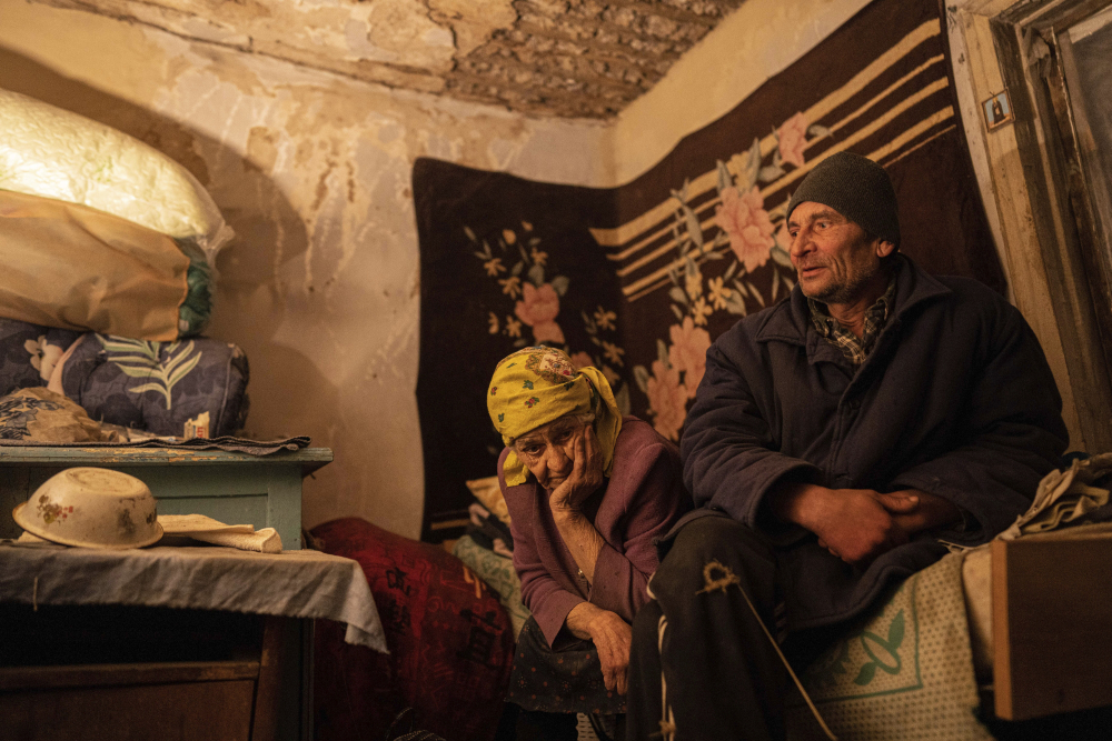 Nina Gonchar, 93, sits in her house which was mostly destroyed by Russian forces. Evgeniy Maloletka/Associated Press