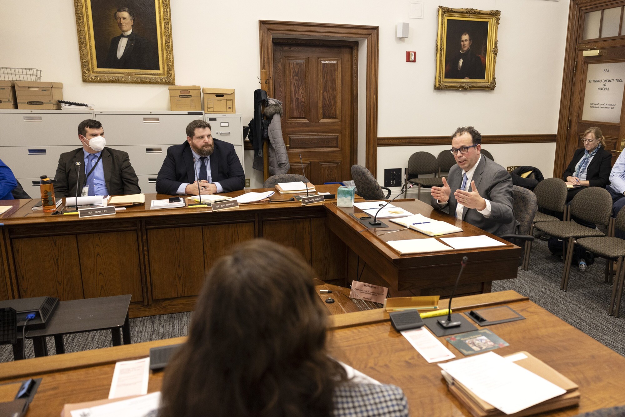 Justin Andrus, the executive director of the Maine Commission on Indigent Legal Services, speaks in front of Judiciary Committee at the State House on Jan. 17. Brianna Soukup/Staff Photographer