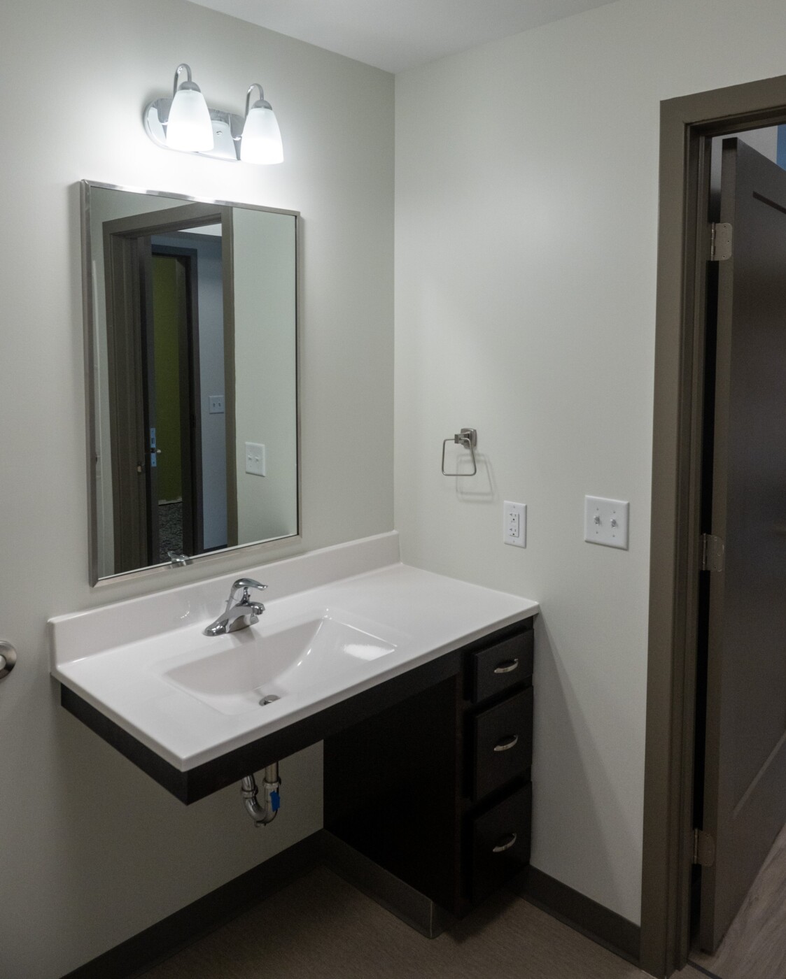 A handicapped-accessible bathroom sink is seen Wednesday at the Senior Living at the Marketplace building in Augusta. Construction of the 42-unit affordable housing development targeted at those 55 or older is expected to wrap up in February. Joe Phelan/Kennebec Journal