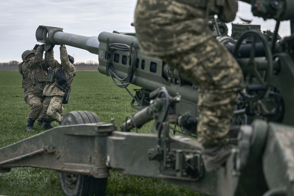 Ukrainian soldiers prepare a U.S.-supplied M777 howitzer to fire at Russian positions in the Kherson region, Ukraine, on Jan. 9. Libkos via AP