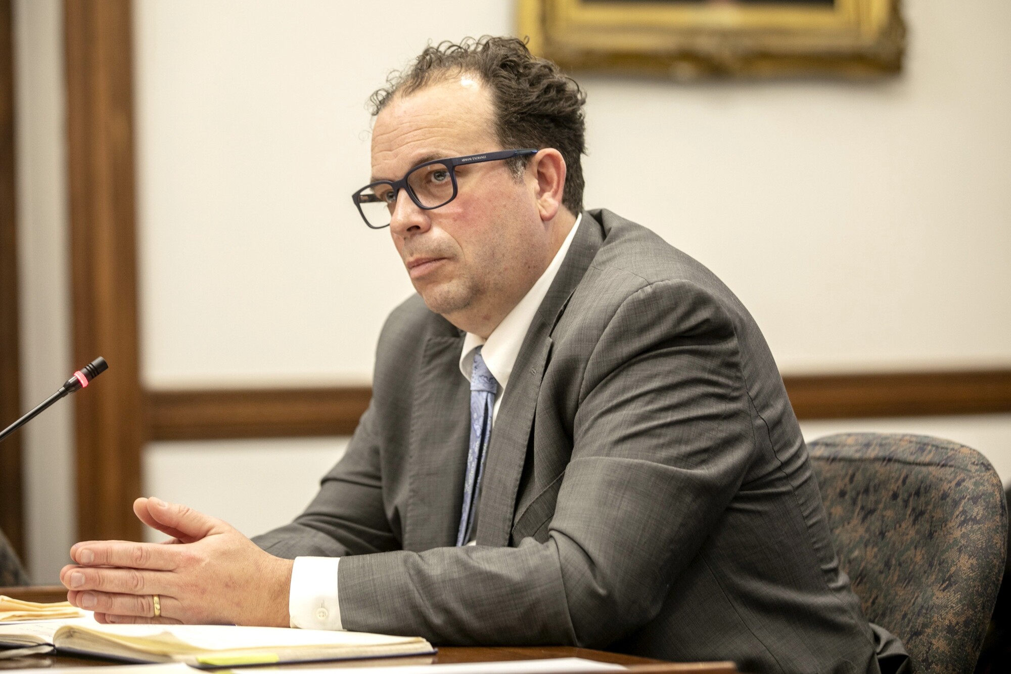 Justin Andrus, the executive director of the Maine Commission on Indigent Legal Services, speaks in front of Judiciary Committee at the State House in January. Brianna Soukup/Staff Photographer