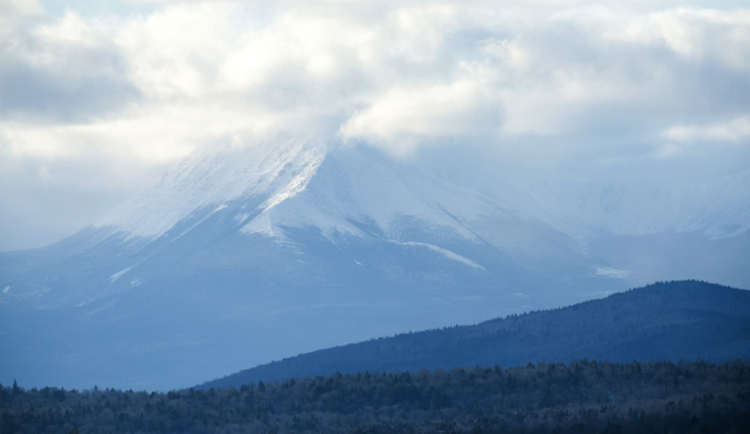 Snow and clouds obscure the peak of Mt. Katahdin as seen from Patten. Kevin Bennett Photo