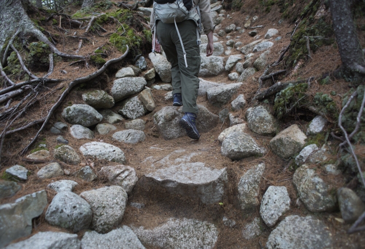 Baxter State Park Trail Supervisor Liz Thibault hikes up a 450-step staircase on the Hunt Trail which took over a decade to install. Derek Davis/Staff Photographer