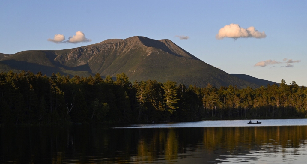 A canoe drifts silently across Kidney Pond in Baxter State Park with Katahdin in the background. Shawn Patrick Ouellette/Staff Photographer