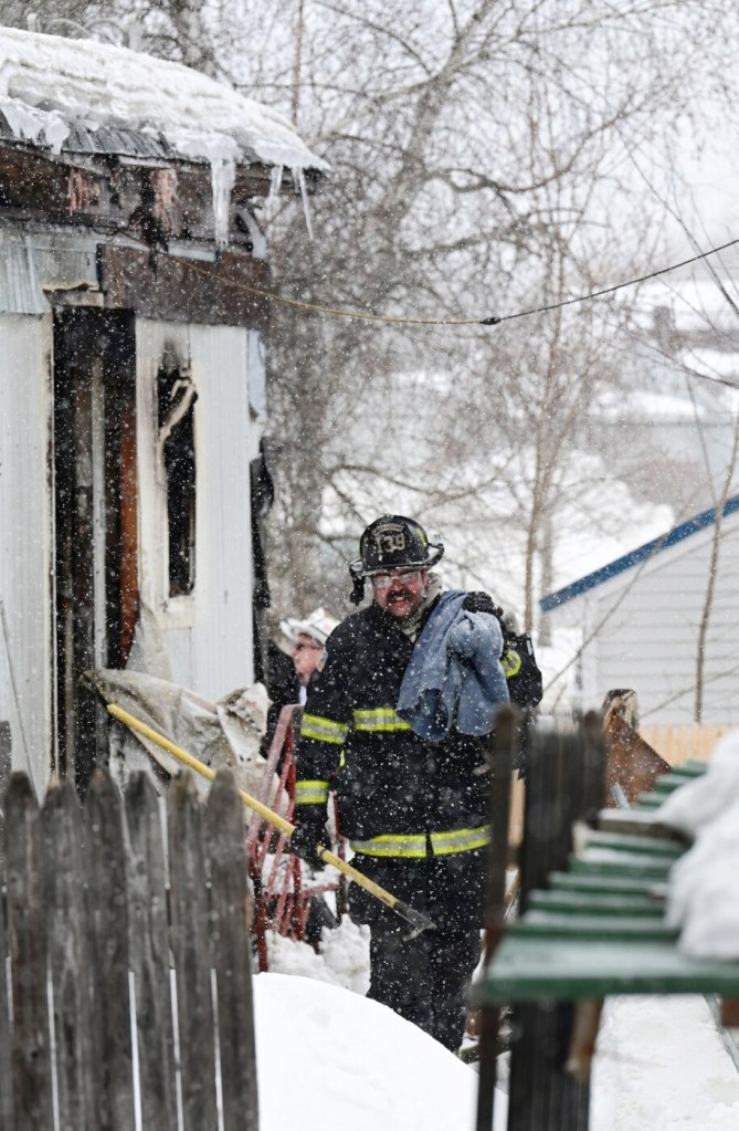 Firefighting efforts were hindered, Rodriguez said, by windy and snowy weather conditions, but also because of many obstacles on the house floor. While the fire was under control by 10:30 a.m., Rodriguez said firefighters were kept on scene for hours doing “overhaul” – searching for hidden fires and embers among the piles of items.