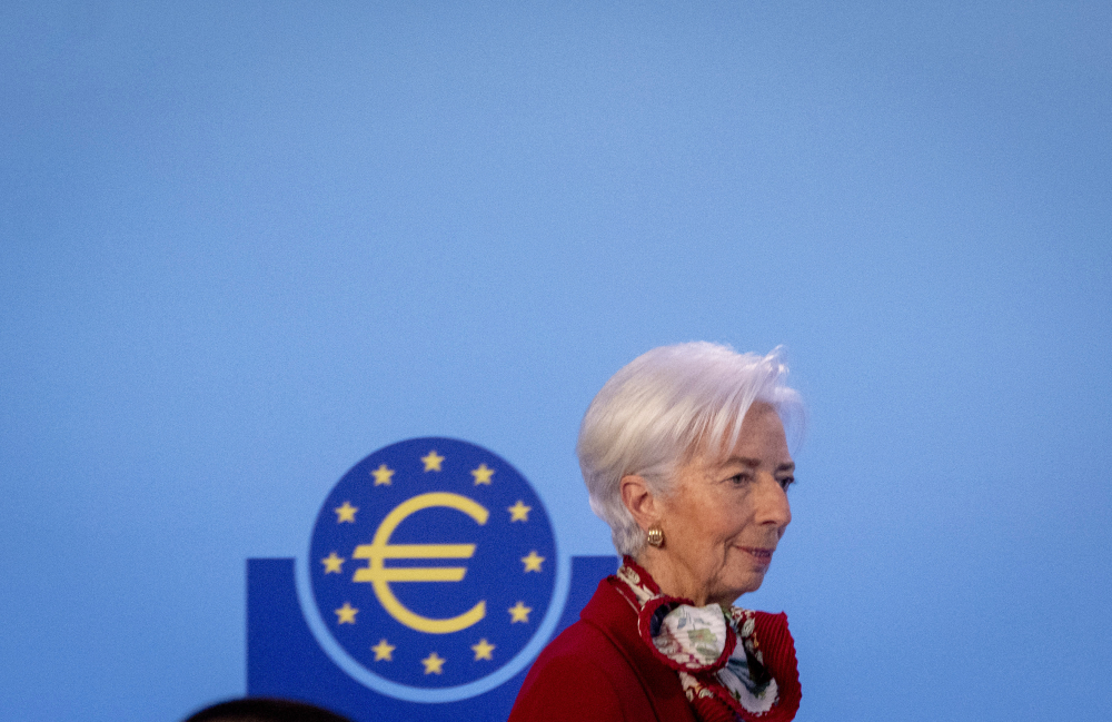 President of European Central Bank Christine Lagarde arrives for a press conference in Frankfurt, Germany, after a meeting Thursday of the ECB’s governing council. Michael Probst/Associated Press