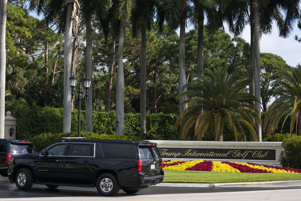 A motorcade carrying former President Donald Trump arrives at Trump International Golf Club on Sunday in West Palm Beach, Fla. Evan Vucci/Associated Press