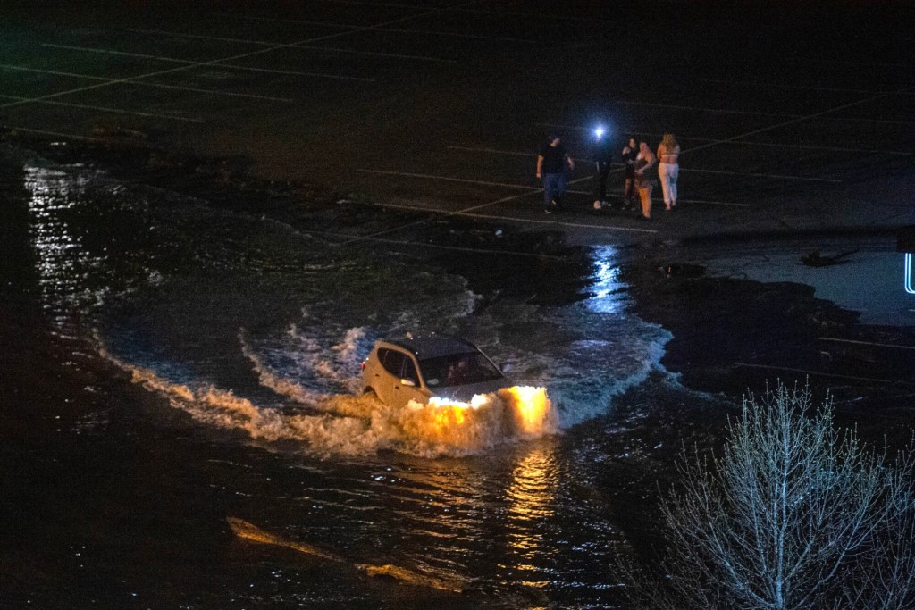 “It’s gotten better,” Rick Pullen, owner of the Hathaway building, said of the flooding Tuesday. Pullen stood at the edge of the water trying to read the parking passes of the one or two partially submerged cars to notify their owners. Most residents had moved their vehicles away from the water.